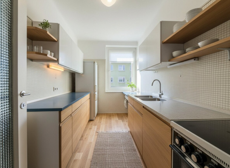 Mit überschaubarem Aufwand lässt sich die Wohnung auf 3 Zimmer adaptieren – die bestehende Küche könnte als separates Zimmer genutzt werden, während das Wohnzimmer zur offenen Wohnküche wird.
