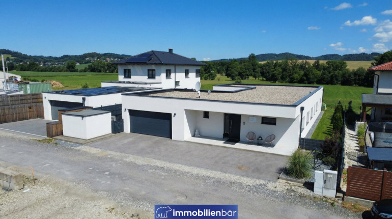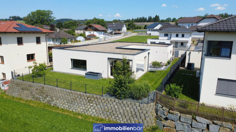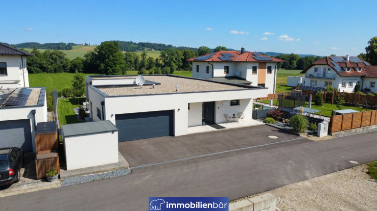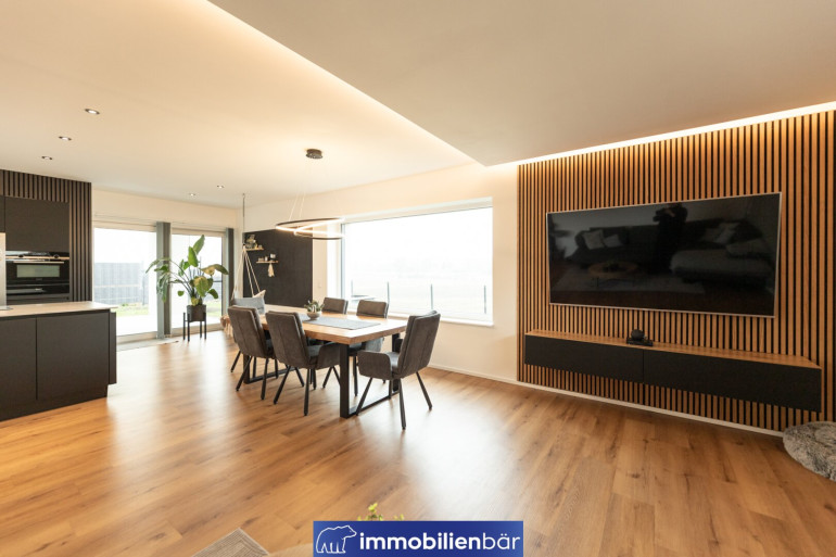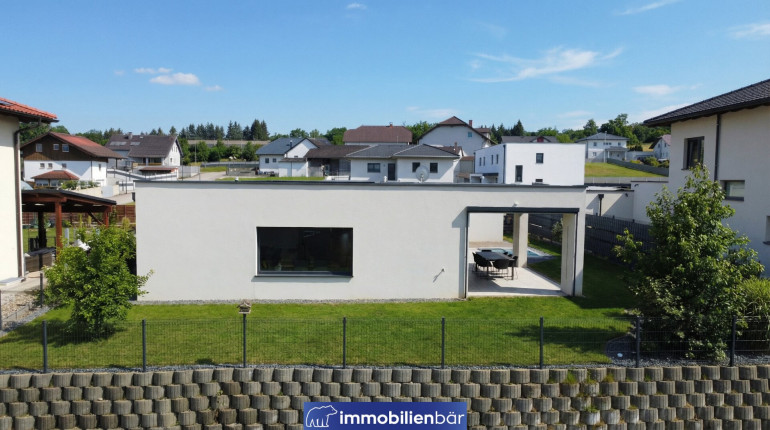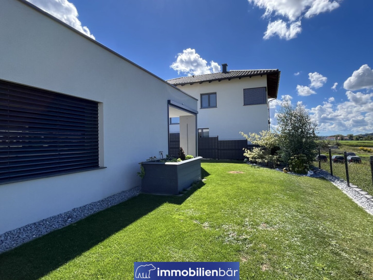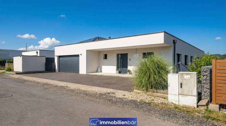 Dieser 2020 errichtete Design-Bungalow in Pichl bei Wels vereint durchdachte Planung, massive Bauweise und eine stimmige Gesamtgestaltung. Auf einem ca. 771m² großen Grundstück entstand ein Zuhause mit großzügigem Raumgefühl und hochwertiger technischer Ausstattung. Mit einer Wohnnutzfläche von ca. 133,35m² bietet das Haus ein funktionales, familienfreundliches Raumkonzept, ergänzt durch ca. 58,01m² Nebenflächen inklusive großzügiger Garage.