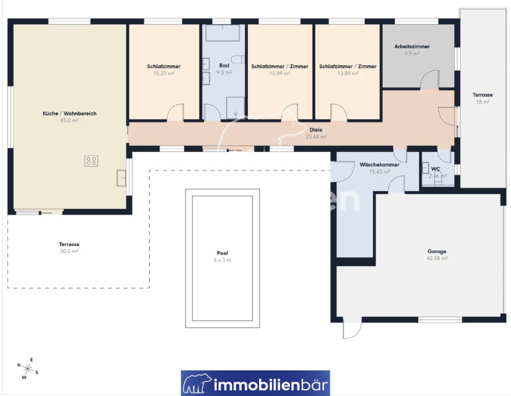 - Architektonisch geschützter Pool- und Terrassenbereich