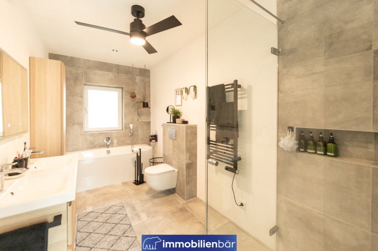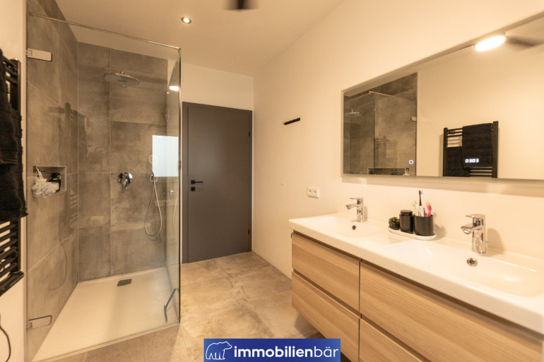 Die klar gestalteten Außenanlagen mit Stützmauer, hochwertigen Belägen und durchdachter Linienführung unterstreichen den modernen Charakter und schaffen eine Atmosphäre, die an einen privaten Boutique-Rückzugsort erinnert. Auch die Bauweise und Ausstattung spiegeln den Qualitätsgedanken wider. Dieses Haus überzeugt durch Substanz, klare Architektur und eine Außenraumgestaltung mit besonderer Aufenthaltsqualität.