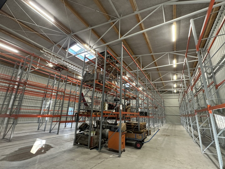 - Hallenhöhe: ca. 6 Meter – ideal für Hochregal- oder Palettenlagerung