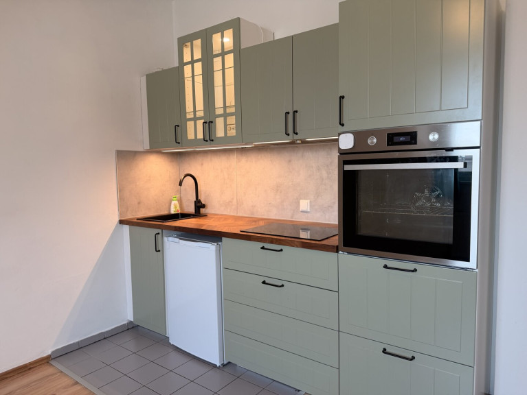 Schlafzimmer, Wohnzimmer mit offener Einbauküche, Vorzimmer,