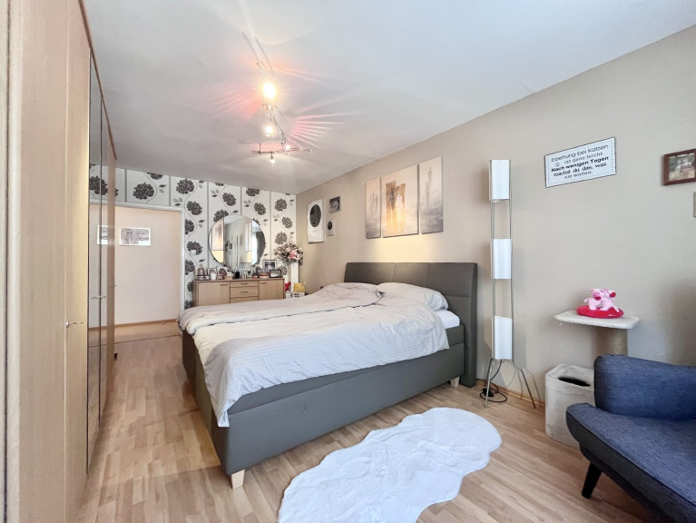 Schlafzimmer, westlich ausgerichtet – ebenfalls hell und freundlich mit angenehmer Abendsonne