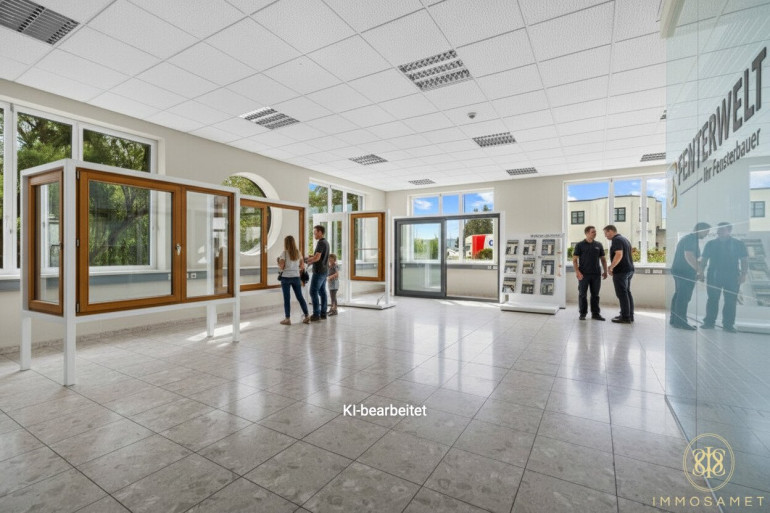 Die Büroflächen bieten die perfekte Infrastruktur mit Teppichböden, Fliesen und Laminat. Sofort bezugsfertig mit moderner Deckenbeleuchtung, neuer Küchenzeilen und Klimageräten. Tageslichtdurchflutet, offene Empfangshalle und Glaswände trennen die drei Büroetagen praktisch und modern.