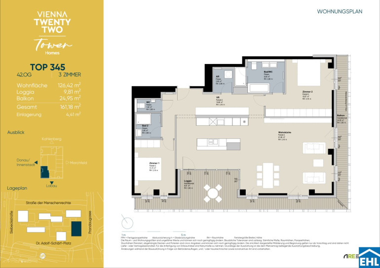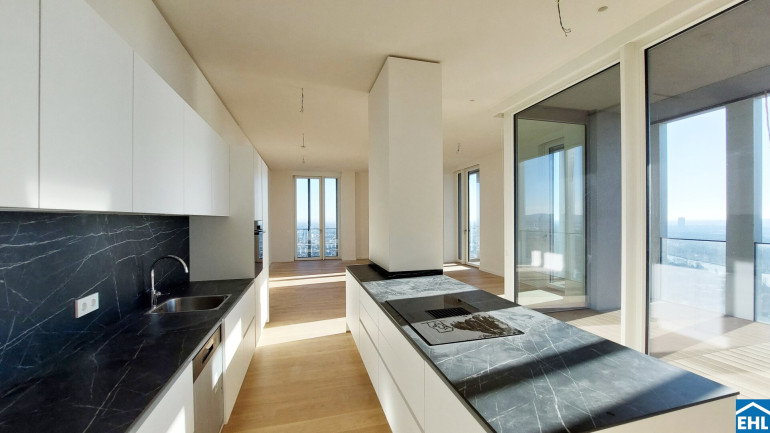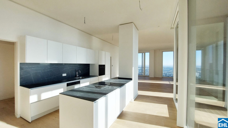In einzigartiger Lage, direkt bei der U1-Station Kagran und vis-à-vis vom Donau Zentrum, entsteht ein exklusiver, ca. 155m hoher Wohnturm mit 45 Etagen. Die insgesamt 347 Mietwohnungen bieten einen vielfältigen Wohnungsmix: von smart geschnittenen 1,5-Zimmer-Apartments ab ca. 38 m² über komfortable 2-Zimmer-Wohnungen bis hin zu großzügigen 3- und 4-Zimmerwohnungen mit bis zu ca. 80 m².