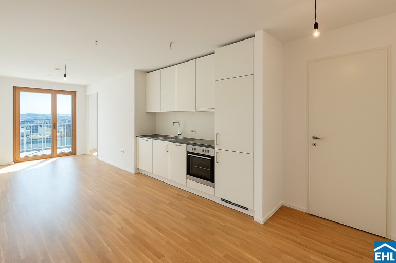 Sonnwendviertel: 2-Zimmer-Wohnung mit Balkon in der 18. Etage – Fitnessraum, Co-Working & Rooftop-Terrasse inklusive!
