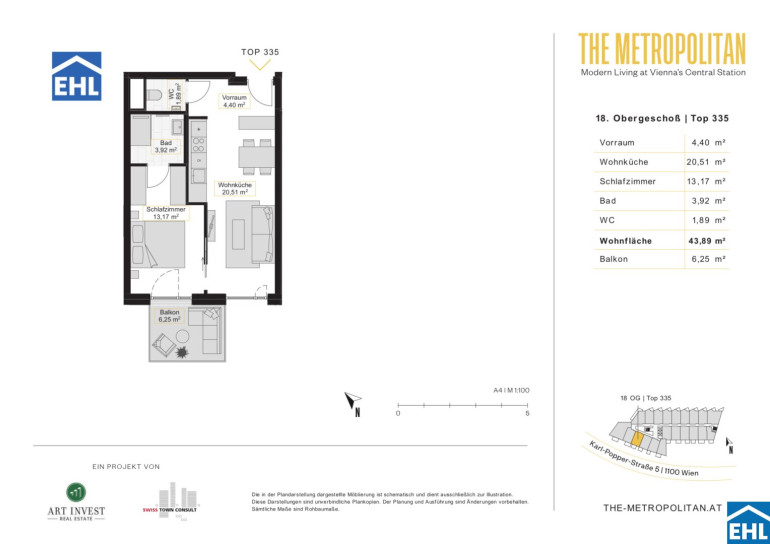 Das moderne Wohnbauprojekt „METROPOLITAN – Modern Living“ befindet sich im aufstrebenden und lebendigen Sonnwendviertel, nur wenige Gehminuten vom neu errichteten Hauptbahnhof entfernt. Die Lage bietet eine hervorragende Infrastruktur mit zahlreichen Einkaufsmöglichkeiten, Restaurants und Cafés in der Umgebung. Besonders hervorzuheben ist die Nähe zum Helmut-Zilk-Park, der Erholung und Freizeitspaß für die ganze Familie bietet.