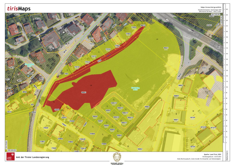 Weiters möchten wir darauf hinweisen, dass sich das Grundstück in der gelben Zone befindet.