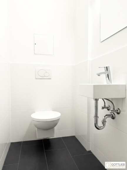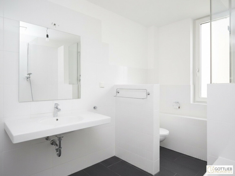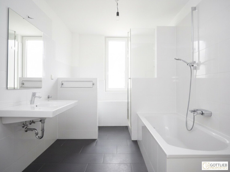 + Tageslicht-Wannenbad mit Dusche, Waschbecken, Waschmaschinenanschluss und Toilette