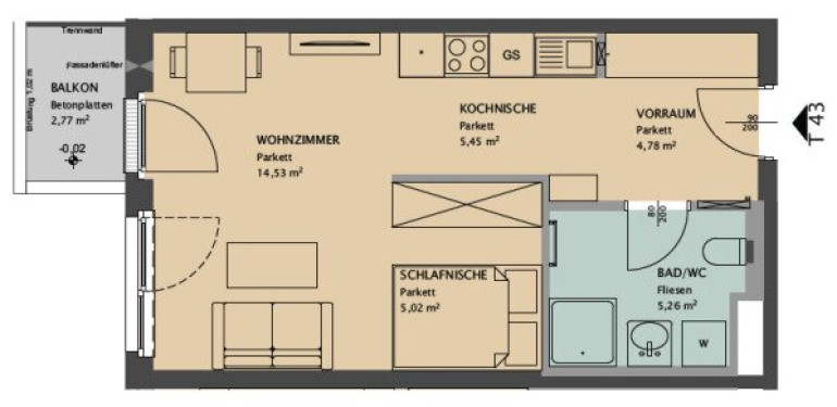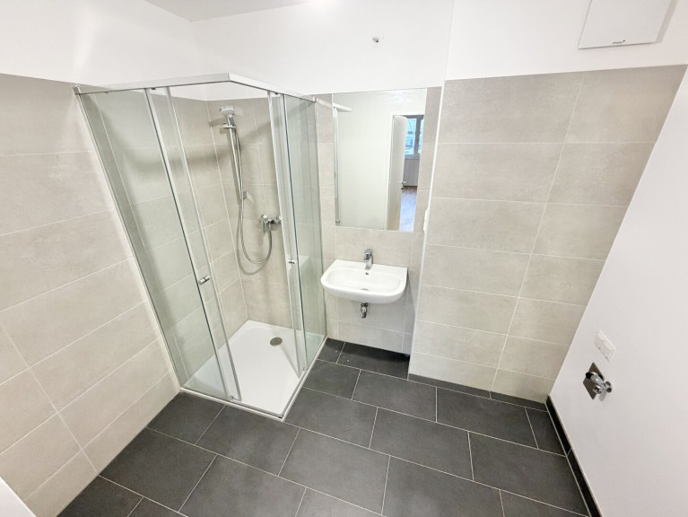 Die Wohnung verfügt über ca. 35 m² Nutzfläche und einem Balkon. Die Wohnräume sind mit Parkettboden, die Nassräume mit Fliesen ausgestattet. 3-fach-verglaste Fenster mit elektrischer Außenbeschattung sorgen für angenehmes Raumklima.