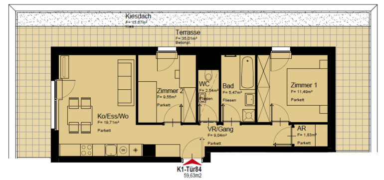 Moderne 3-Zi Wohnung mit großer Terrasse - nahe U1 (provisionsfrei!)