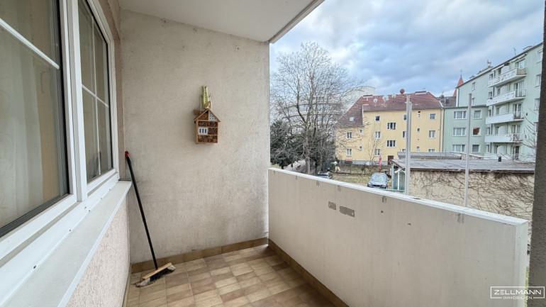 Diese gut geschnittene 3-Zimmer-Wohnung überzeugt durch ihre ruhige Lage, die praktische Raumaufteilung und vor allem durch die Loggia als geschützten, privaten Außenbereich mit Grünblick. Lift, Garage im Haus, Kellerabteil und separate Küche runden das Angebot ab.