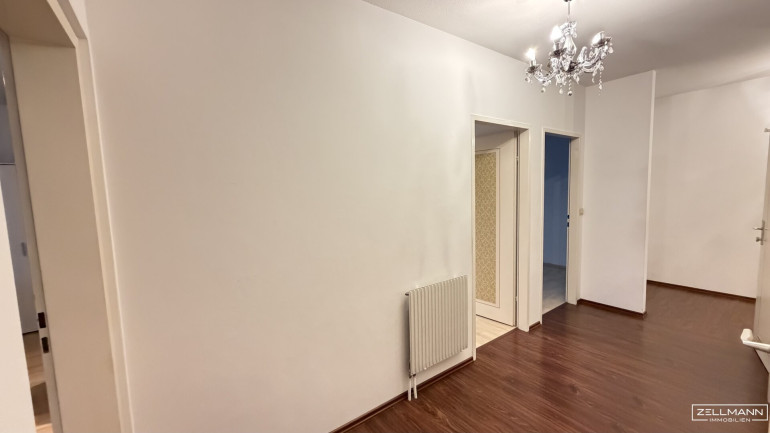 Der großzügige Vorraum bildet das zentrale Herzstück der Wohnung. Von hier aus sind sämtliche Räume getrennt begehbar: