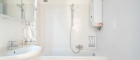 - Badezimmer mit Wanne, Waschmaschinenanschluss und Sprossenheizung