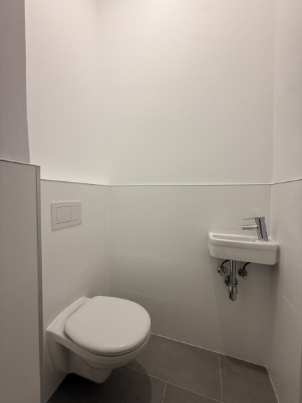 4 der straßenseitig situierten Räume weisen je einen Kalt- und Warmwasseranschluss samt Ablaufrohr für Handwaschbecken, o.ä., auf.
