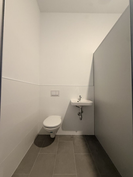 Auf der anderen Seite des Ganges befinden sich 6 fensterlose Nebenräume (jeweils ca. 8 – 9 m²) und ein WC. In einem dieser Nebenräume befinden sich zwei weitere WC mit Handwaschbecken bereits installiert. Eines kann bei Bedarf barrierefrei ausgestattet werden.
