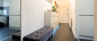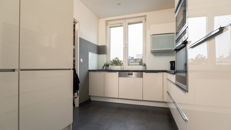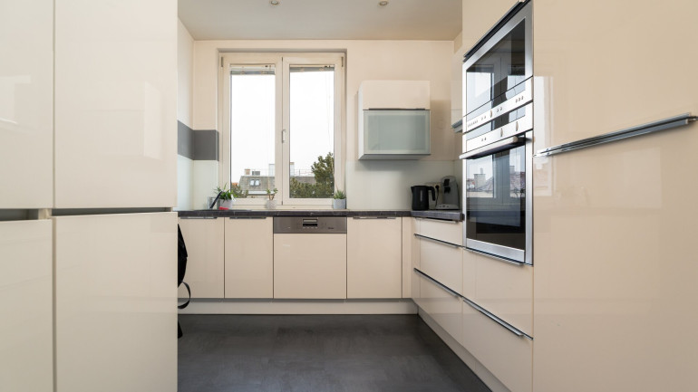 Mit dem Lift gelangen Sie in den 4. Stock. Vom Flur aus befindet sich linkerhand das Badezimmer ausgestattet mit Dusche, WC und Handwaschbecken. Weiters steht Ihnen auf der linken Seite die hochwertig ausgestattete Küche (inkl. Waschmaschinenanschluss) mit Durchgang in das Kinderzimmer/Büro zur Verfügung. Dieses kann nach Belieben genutzt werden. Das Wohnzimmer ist einladend hell und bietet genügend Platz für einen Essbereich. Von hier aus gelangen Sie auf den nordseitig und in den Innenhof ausgerichteten Balkon, wo Ihrer Entspannung nichts im Wege steht - ganz ohne Lärmeinfluss.