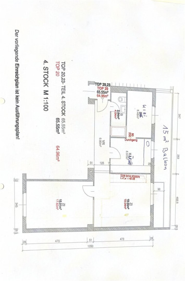 bestehend aus Vorraum, Badezimmer mit WC und Dusche, Küche mit Durchgang in das Kinderzimmer/Büro (Kabinett), Wohnzimmer inkl. Essbereich mit Zugang auf den Balkon und Schlafzimmer - nordseitig ausgerichteter Balkon mit rund 15 m²
