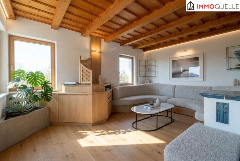 Willkommen in einem Zuhause, das Wohnen zum Lebensgefühl macht. Eingebettet in eine idyllische Hanglage, nahezu verborgen und mit beeindruckendem Ausblick auf das Gebirge vereint dieses Einfamilienhaus Großzügigkeit, Privatsphäre und spürbare Geborgenheit.