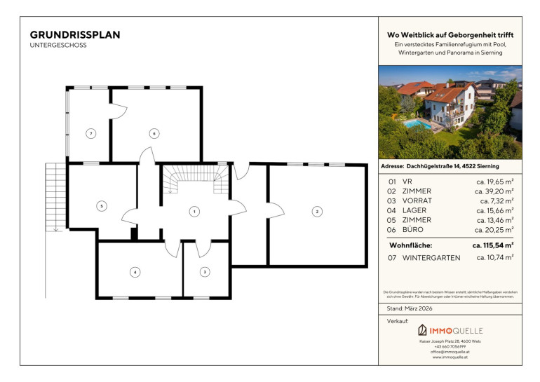 Das Untergeschoss eröffnet vielseitige Nutzungsmöglichkeiten. Ein Büro oder Zimmer mit Zugang zum Wintergarten, zwei weitere Räume - darunter ein großzügiger Bereich für Fitness, Hobby oder Spielzimmer - sowie Vorratsraum, Holzlager und Technikraum bieten Raum für Individualität. Dank eigenem Zugang ideal als separate Einheit für Kinder, Gäste oder Mehrgenerationenwohnen.