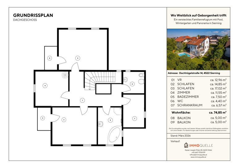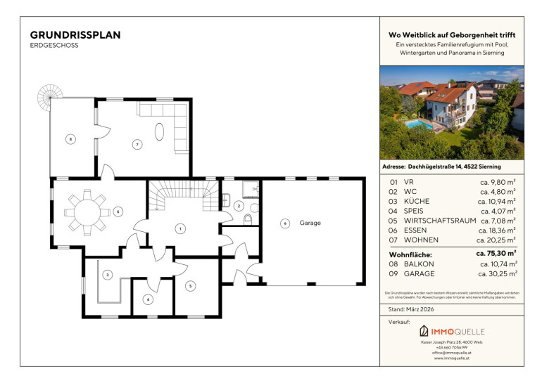 Lage? Die Lage besticht durch ihre ruhige Umgebung, eine ausgezeichnete Infrastruktur und ein gehobenes Wohnumfeld. Die erhöhte Position eröffnet zudem einen schönen Ausblick auf das umliegende Gebirge und garantiert ein spürbares Maß an Privatsphäre. Einkaufsmöglichkeiten, Ärzte, Schulen sowie die Busanbindung befinden sich in komfortabler Nähe und gestalten den Alltag angenehm unkompliziert.