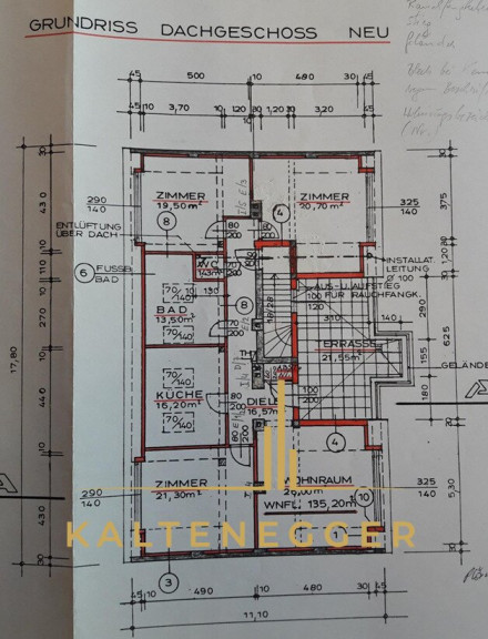 Die Wohnnutzfläche beträgt ca. 135,20 m² zuzüglich der Terrasse mit ca. 21,55 m² und des Gartens im Innenhof mit ca. 30 m².