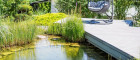 Der Natur-Schwimmteich ist das Herzstück dieses Gartens. In seiner friedlichen Umgebung können Sie sich vollkommen entspannen, die Natur beobachten oder ein erfrischendes Bad nehmen. Die harmonische Integration des Teiches in die Landschaft schafft einen Ort, an dem Körper und Geist zur Ruhe kommen.