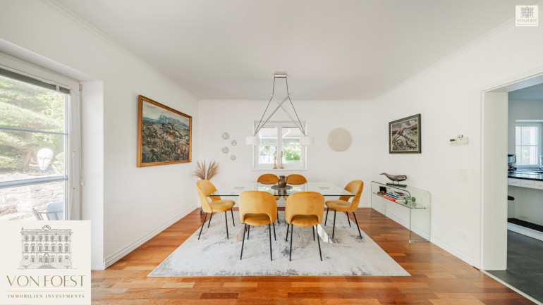 Die hochwertige Einbauküche ist ein Ort, an dem Kochen zur Freude wird. Mit modernen Geräten und einem angrenzenden Essbereich bietet sie den idealen Raum für gesellige Zusammenkünfte mit Familie und Freunden.