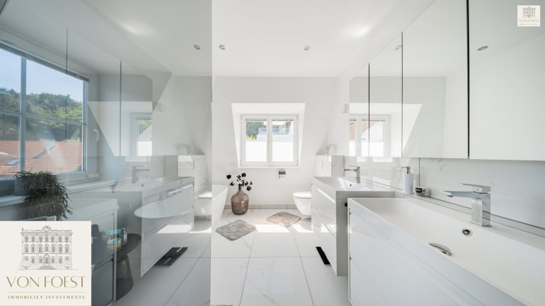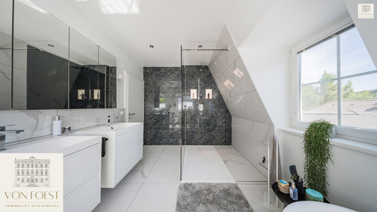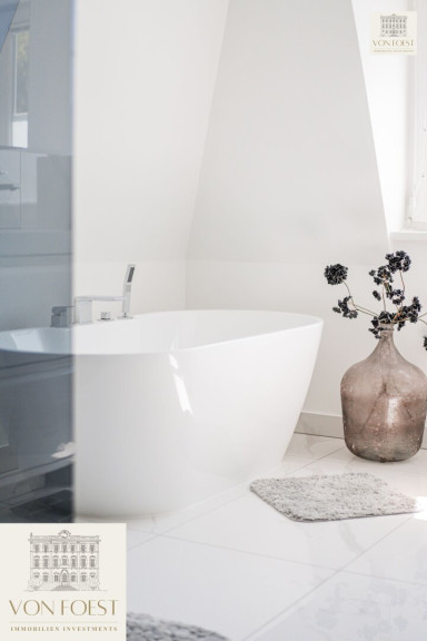 Die Schlafzimmer sind wahre Rückzugsorte, in denen Sie Ruhe und Geborgenheit finden sowie einen traumhaften Ausblick in den Garten genießen können. Das stilvolle, moderne Badezimmer mit exklusiven Armaturen, einer riesigen, bodenbündigen Walk-In Dusche sowie einer freistehenden Badewanne verwandeln den täglichen Start in den Tag in ein kleines Wellness-Erlebnis.