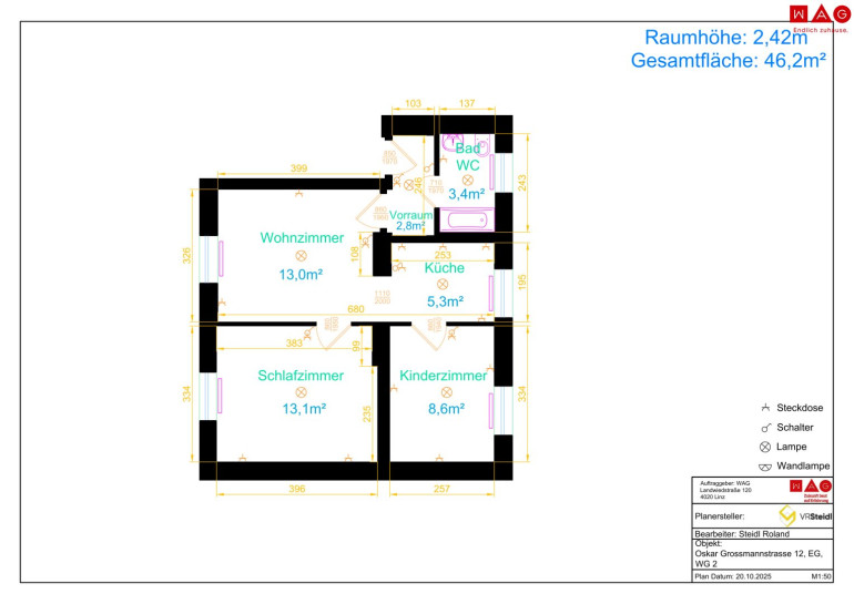 - kompaktes, hochwertig ausgestattetes Badezimmer mit Dusche und Fenster (Am Plan ist noch eine Badewanne eingezeichnet - aus der Zeit VOR DER SANIERUNG)