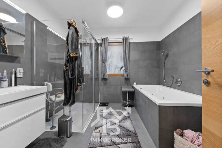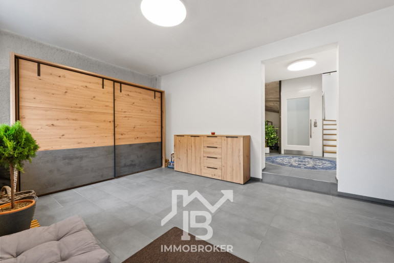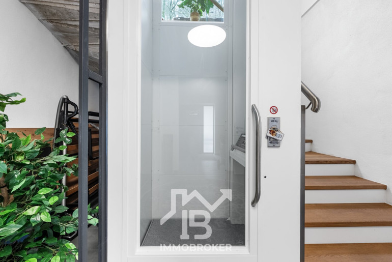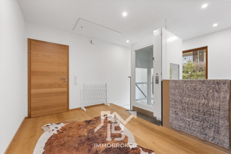 Ein besonderes Highlight ist der integrierte Personenaufzug, der sämtliche Ebenen komfortabel verbindet. So gelangen Sie nicht nur barrierefrei, sondern auch besonders bequem ins Obergeschoss – ein klares Statement für nachhaltige Wohnqualität und Zukunftssicherheit.