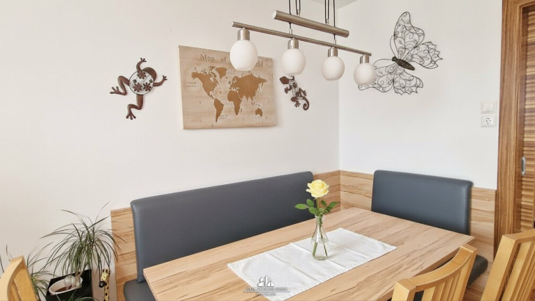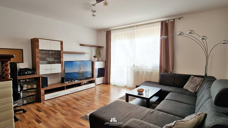 Das große, helle Wohnzimmer eröffnet auch die Möglichkeit, eine Ecke für Home-Office etc. zu nutzen und bei Schönwetter gehen Sie einfach auf die Loggia, genießen frische Luft und einen weiten Blick zu den Bergen ...