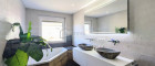 Die Wohnung verfügt über drei Schlafzimmer, die sich flexibel als Kinder-, Gäste- oder Arbeitszimmer nutzen lassen. Die gesamte Wohnung ist mit hochwertigen, 3-fach verglasten Fenstern ausgestattet, die für eine exzellente Schall- und Wärmeisolierung sorgen. Das stilvolle Badezimmer besticht durch hochwertige, moderne Fliesen sowie eine großzügige, begehbare Dusche, eine Badewanne und einen Doppelwaschtisch. Für ein Höchstmaß an Privatsphäre ist die Toilette separat untergebracht. Ein praktischer Hauswirtschaftsraum mit Waschmaschinenanschluss vervollständigt das durchdachte Raumangebot.