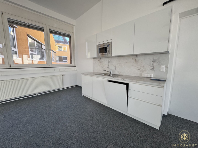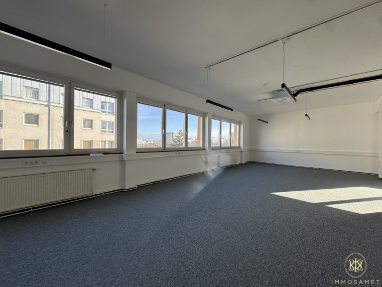 Der große Raum hat zu drei Seiten Fenstern und wird somit von Tageslicht geflutet. Die hochwertige Renovierung hat die Grundlage für das perfekte Arbeiten geschaffen. Der Ausblick in die Stadt hinein und Weite bestimmen das großzügige Büro. Verwirklichen Sie hier den Traum vom eigenen, idealen Bürostandort. Ob Kundenverkehr oder nicht: Das Büro bietet zwei separate WC Gruppen im Zugang; eine moderne Einbauküche und viel Platz um Ihr Konzept zu verwirklichen.