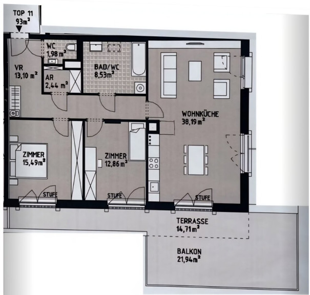 Mit ihren 93m² Wohnfläche und einer 36m² großen Terrasse eignet sich diese Wohnung optimal für Familien und Personen die viel Platz benötigen!