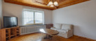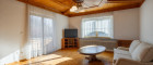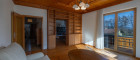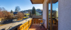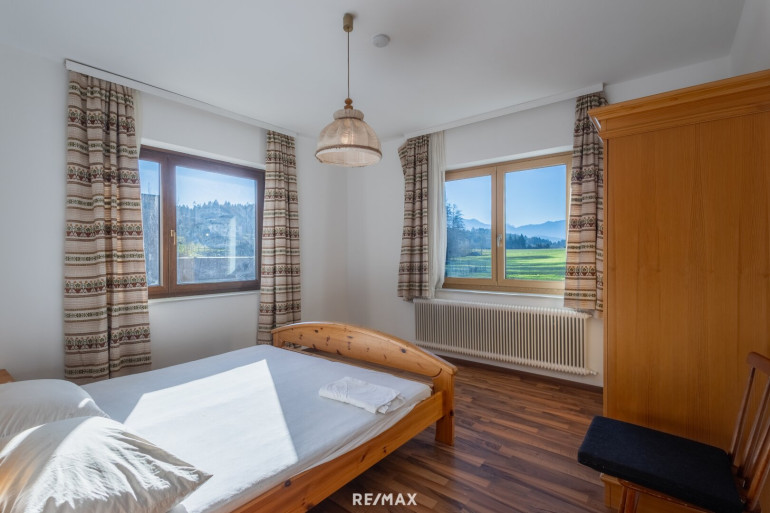 - Wohnzimmer mit Ostbalkon, Schlafzimmer westlich ausgerichtet mit großem Fenster und Blick auf Berge, Wiesen und Wald