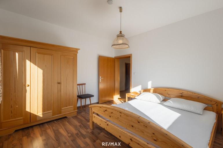 - 5 helle Zimmer: 3 Schlafzimmer, Wohnzimmer, Esszimmer mit Kachelofen