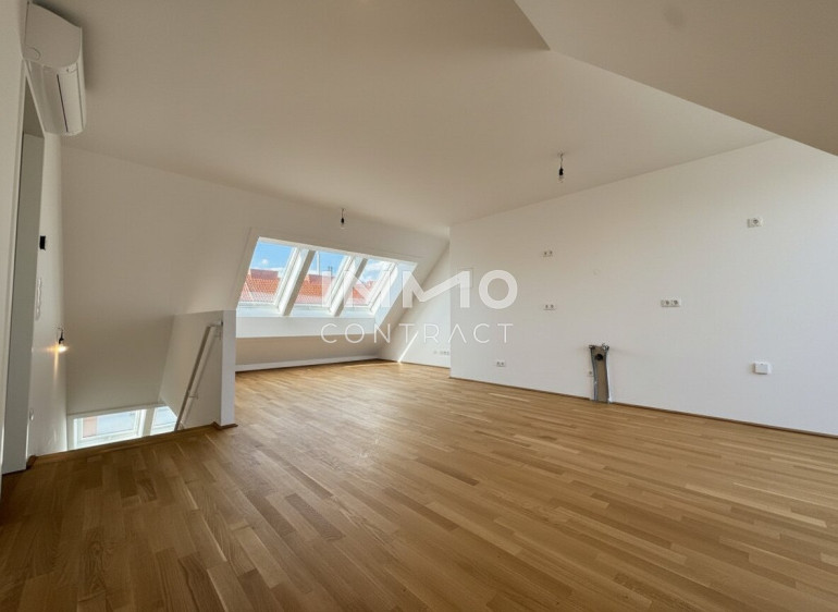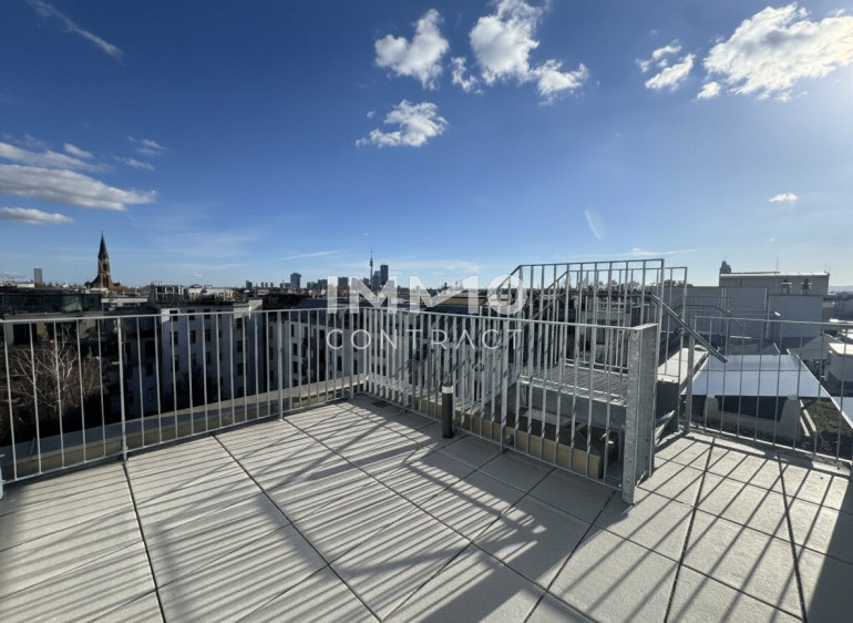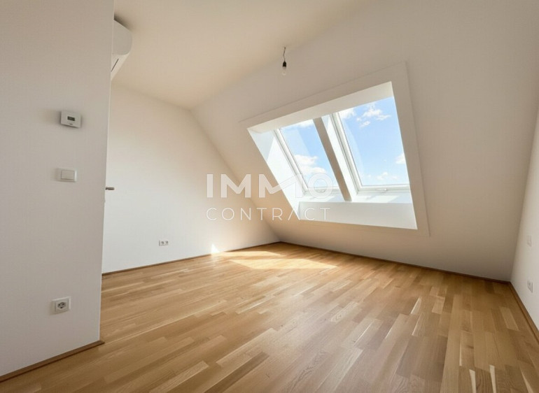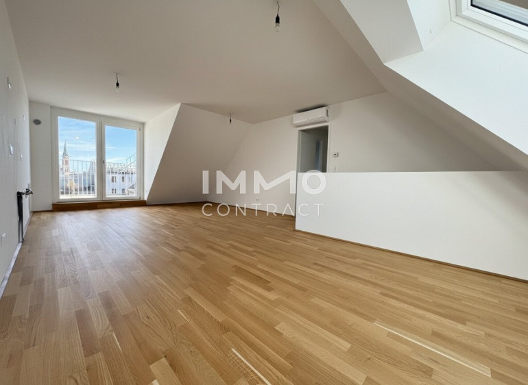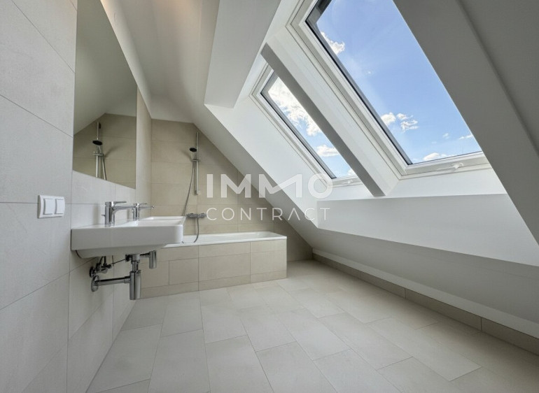 Willkommen in Ihrem neuen Zuhause: Diese elegante 3-Zimmer-Maisonette im Dachgeschoß erstreckt sich über drei Ebenen und rund 95 m² Wohnfläche und begeistert mit einer privaten Dachterrasse samt herrlichem Rundumblick. Hochwertige Markenqualität aus Österreich, moderne Technik, klimatisierte Räume und großflächige Dachfenster schaffen ein lichtdurchflutetes Ambiente mit besonderem Wohngefühl. Auf der unteren Ebene befindet sich ein ruhiges Zimmer mit en-suite Badezimmer, während die zweite Ebene mit einer großzügigen, rund 37 m² großen Wohnküche und direktem Terrassenzugang das Herzstück der Wohnung bildet. Ein weiteres Zimmer, ein stilvolles Badezimmer mit Badewanne und Doppelwaschbecken sowie eine separate Toilette sorgen für optimalen Komfort. Über eine außenliegende Treppe gelangen Sie schließlich auf die private Dachterrasse – ein exklusiver Rückzugsort über den Dächern mit beeindruckender Aussicht.