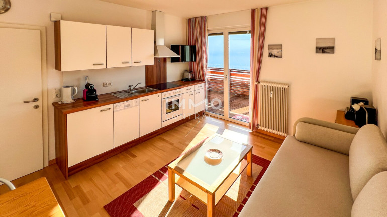 Die kompakt geschnittene Wohnung überzeugt durch eine durchdachte Raumaufteilung. Wohnküche und Schlafzimmer bieten direkten Zugang zum großzügigen Südbalkon, der Sonne, Ruhe und Ausblick vereint und im Sommer zusätzlichen Wohnraum schafft.