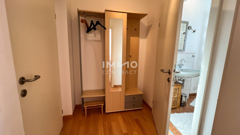 Ein Vorraum mit Garderobe sowie ein modernes Bad mit Dusche, WC und Fenster ergänzen das Raumangebot. Die Wohnung wird komplett möbliert übergeben und ist sofort nutzbar.