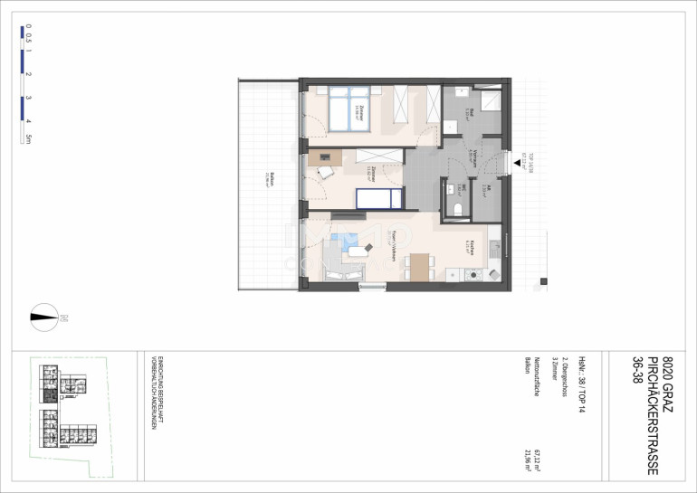 Diese ca. 67,12 m² große Wohnung befindet sich im 2. Obergeschoß des Hauses Pirchäckerstraße 36-38 in einer modernen, neuwertigen Wohnanlage.