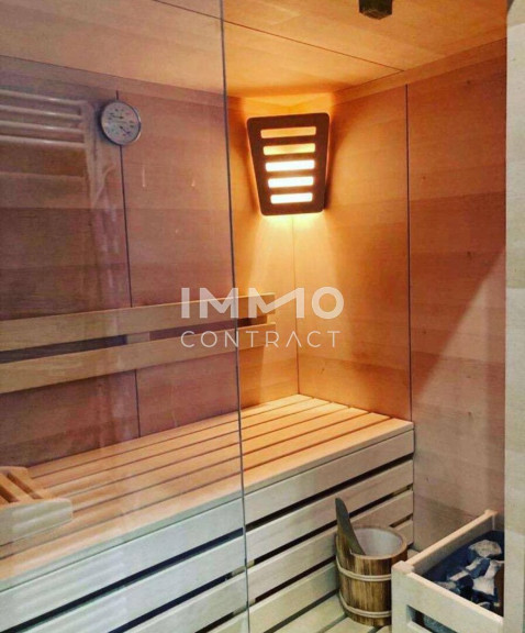 Steinboden, Parkett, Gas, Fußbodenheizung, Zentralheizung, Wohnküche / offene Küche, Personenaufzug, Bad mit Fenster, Dusche, Sauna