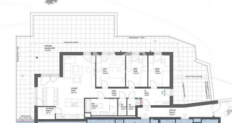 Raumaufteilung: Vorraum, Gang, Hauswirtschaftsraum, WC, Bad, 3 Schlafzimmer, Wohn-Essküche (Küche nicht möbliert), Abstellraum im Küchenbereich (Speis), Terrasse. Die großzügige Freifläche ermöglicht einen traumhaften Ausblick und schafft somit zusätzliche Lebensqualität.