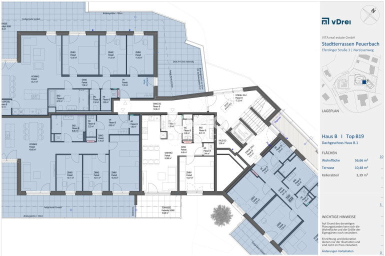 Im Zentrum von Peuerbach entstehen 32 Eigentumswohnungen mit einem Ausmaß von rund 35 m² bis etwa 117 m². Die "Stadtterrassen Peuerbach" sind südwestlich ausgerichtet, erstrecken sich entlang des Narzissenweges und bieten einen schönen Ausblick über Peuerbach. Die zentrale Lage in Peuerbach ermöglicht Ihnen einen bequemen Zugang zu allen wichtigen Annehmlichkeiten des täglichen Lebens, darunter Einkaufsmöglichkeiten, Schulen und medizinische Einrichtungen, die in wenigen Minuten erreichbar sind.Für jede Wohnung ist fix ein Tiefgaragenplatz reserviert (zzgl. € 24.000,00). Das Projekt wird mit hoher Nachhaltigkeit und einer Gesamtenergieeffizienz A+ ausgerichtet. Die Photovoltaikanlage am Dach trägt zur energiesparenden Bewirtschaftung bei. Beheizung & Warmwasseraufbereitung funktionieren über eine Luftwärmepumpe, eine elektrische Beschattung und Glasfaser runden dieses exklusive Angebot ideal ab.