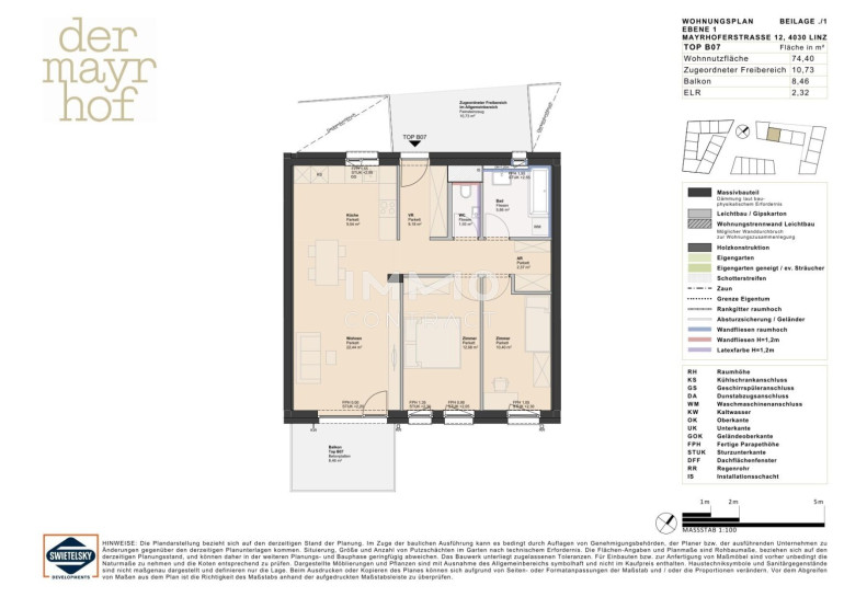 Das Projekt G r ü n G e b o r g e n befindet sich am ruhigen Rand des Linzer Stadtteils Neue Heimat, eingebettet in eine angenehme Wohngegend. In einer Sackgasse ohne Durchzugsverkehr gelegen, bietet die Adresse ein hohes Maß an Privatsphäre und Lebensqualität. Direkt angrenzend erstreckt sich eine Einfamilienhaussiedlung, in unmittelbarer Nachbarschaft befinden sich gepflegte Schrebergärten – ein Bild von Ruhe und naturnahem Wohnen. Im näheren Umfeld sorgen einige Gewerbebetriebe sowie der Maximarkt als Nahversorger für kurze Wege im Alltag. Ein besonderes Highlight ist die Nähe zur Traunau, einem geschützten Naturparadies, das nur wenige Minuten entfernt liegt. Die weitläufige, naturbelassene Aulandschaft lädt zu Spaziergängen, Joggingrunden oder Radtouren ein – über schmale, reizvolle Pfade mitten durch die grüne Oase. Auch in puncto Mobilität ist das Projekt G r ü n G e b o r g e n gut angebunden: Die Bushaltestelle Baintwiese befindet sich direkt beim Wohnprojekt und bietet Anschluss an den Stadtverkehr sowie Schnellbuslinien. Wer lieber mit dem Zug unterwegs ist, erreicht den Bahnhof Linz-Wegscheid in rund 15 Gehminuten.
