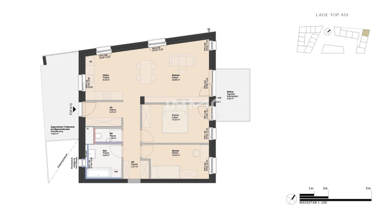 Das Projekt G r ü n G e b o r g e n befindet sich am ruhigen Rand des Linzer Stadtteils Neue Heimat, eingebettet in eine angenehme Wohngegend. In einer Sackgasse ohne Durchzugsverkehr gelegen, bietet die Adresse ein hohes Maß an Privatsphäre und Lebensqualität. Direkt angrenzend erstreckt sich eine Einfamilienhaussiedlung, in unmittelbarer Nachbarschaft befinden sich gepflegte Schrebergärten – ein Bild von Ruhe und naturnahem Wohnen. Im näheren Umfeld sorgen einige Gewerbebetriebe sowie der Maximarkt als Nahversorger für kurze Wege im Alltag. Ein besonderes Highlight ist die Nähe zur Traunau, einem geschützten Naturparadies, das nur wenige Minuten entfernt liegt. Die weitläufige, naturbelassene Aulandschaft lädt zu Spaziergängen, Joggingrunden oder Radtouren ein – über schmale, reizvolle Pfade mitten durch die grüne Oase. Auch in puncto Mobilität ist das Projekt G r ü n G e b o r g e n gut angebunden: Die Bushaltestelle Baintwiese befindet sich direkt beim Wohnprojekt und bietet Anschluss an den Stadtverkehr sowie Schnellbuslinien. Wer lieber mit dem Zug unterwegs ist, erreicht den Bahnhof Linz-Wegscheid in rund 15 Gehminuten.