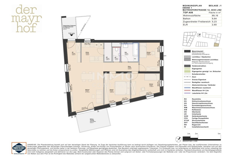 Das Projekt G r ü n G e b o r g e n befindet sich am ruhigen Rand des Linzer Stadtteils Neue Heimat, eingebettet in eine angenehme Wohngegend. In einer Sackgasse ohne Durchzugsverkehr gelegen, bietet die Adresse ein hohes Maß an Privatsphäre und Lebensqualität. Direkt angrenzend erstreckt sich eine Einfamilienhaussiedlung, in unmittelbarer Nachbarschaft befinden sich gepflegte Schrebergärten – ein Bild von Ruhe und naturnahem Wohnen. Im näheren Umfeld sorgen einige Gewerbebetriebe sowie der Maximarkt als Nahversorger für kurze Wege im Alltag. Ein besonderes Highlight ist die Nähe zur Traunau, einem geschützten Naturparadies, das nur wenige Minuten entfernt liegt. Die weitläufige, naturbelassene Aulandschaft lädt zu Spaziergängen, Joggingrunden oder Radtouren ein – über schmale, reizvolle Pfade mitten durch die grüne Oase. Auch in puncto Mobilität ist das Projekt G r ü n G e b o r g e n gut angebunden: Die Bushaltestelle Baintwiese befindet sich direkt beim Wohnprojekt und bietet Anschluss an den Stadtverkehr sowie Schnellbuslinien. Wer lieber mit dem Zug unterwegs ist, erreicht den Bahnhof Linz-Wegscheid in rund 15 Gehminuten.