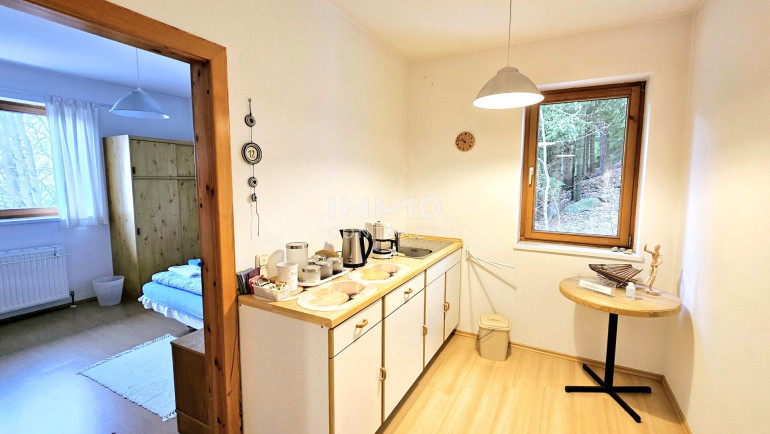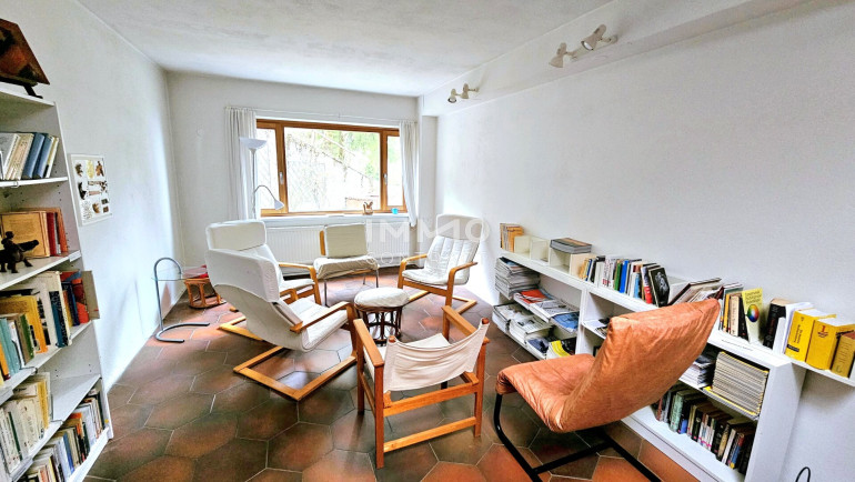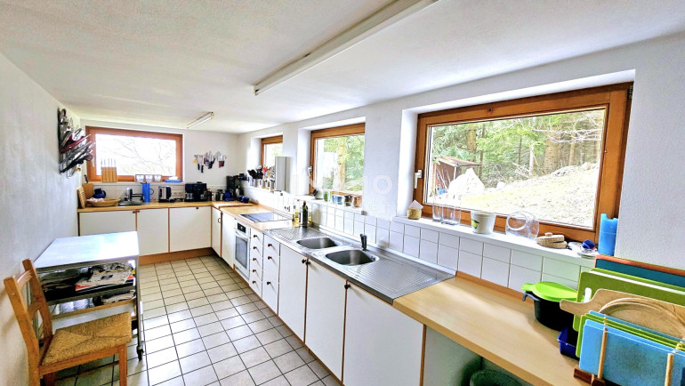 Besonders hervorzuheben ist die Vielfalt an spezialisierten Räumen, die dem Haus seine einzigartige Atmosphäre verleihen: Ein großzügiger Yoga-Raum, ein Meditationsraum, eine hauseigene Bibliothek schaffen Orte der Konzentration und der Stille. Der Meetingraum mit traditionellem Kachelofen bietet idealen Rahmen für Gespräche, Vorträge oder einfach für gemütliche Stunden am Feuer. Ein heller Frühstücksraum lädt zum gemeinsamen Start in den Tag, während eine Küche und Teeküchen die Möglichkeit bieten, flexibel zu bewirten.