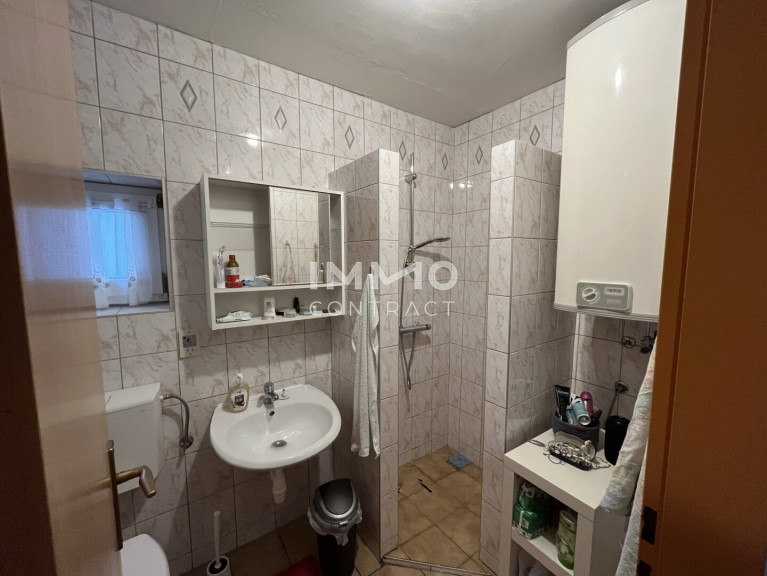 Fliesen, Laminatboden, Parkett, Öl, Heizofen, Zentralheizung, Einbauküche, Bad mit Fenster, Dusche, Swimmingpool
