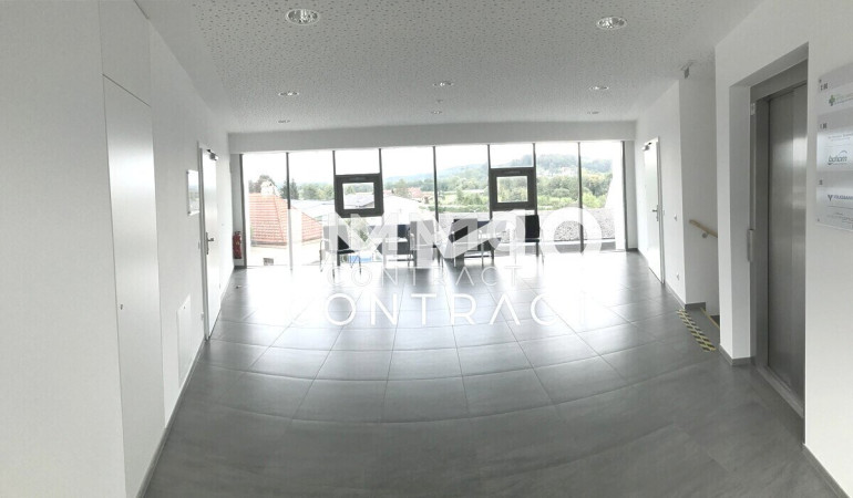 Der Kundenzugang erfolgt vom 1. OG, welcher unmittelbar vom Parkplatz mit 13 Stellplätzen aus erreicht werden kann. Das Objekt ist barrierefrei ausgeführt und mit einem Lift ausgestattet. Das großzügig angelegtes Foyer im 2. OG kann als erweiterter Wartebereich genutzt werden. Die Nutzung als Ordination bzw. Praxis im Gesundheitsbereich bietet sich an, da bereits 2 Allgemeinmediziner im Haus Ihrer Tätigkeit nachgehen.